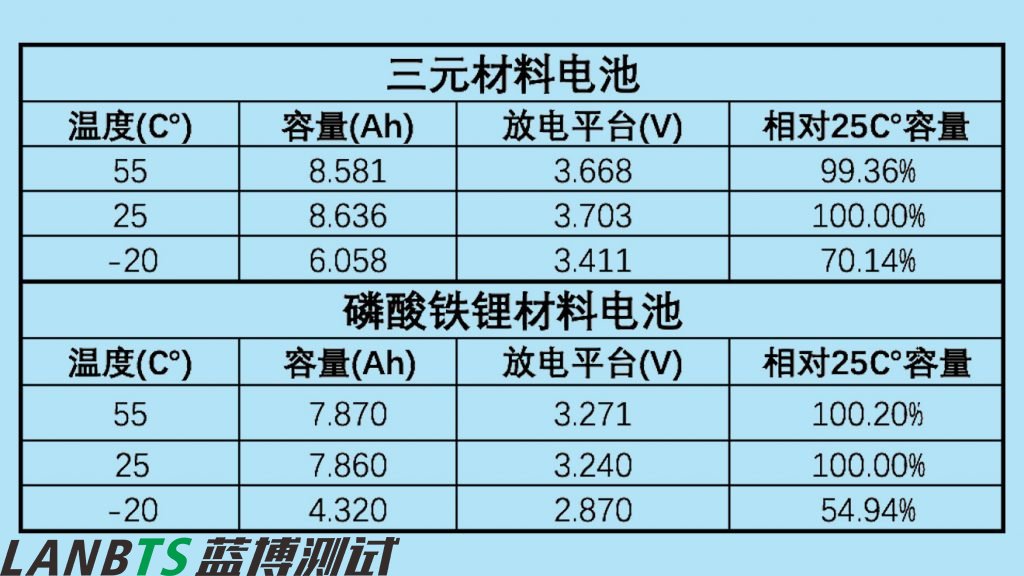 “相對25℃容量”是指不同溫度條件下放電容量與25℃時放電容量的比值。該數(shù)值能夠準(zhǔn)確反映出電池在不同溫度條件下續(xù)航的衰減,越接近100%,電池表現(xiàn)越好。