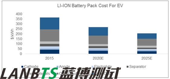 2015-2025,電動汽車鋰電池Pack 單位成本將下降44